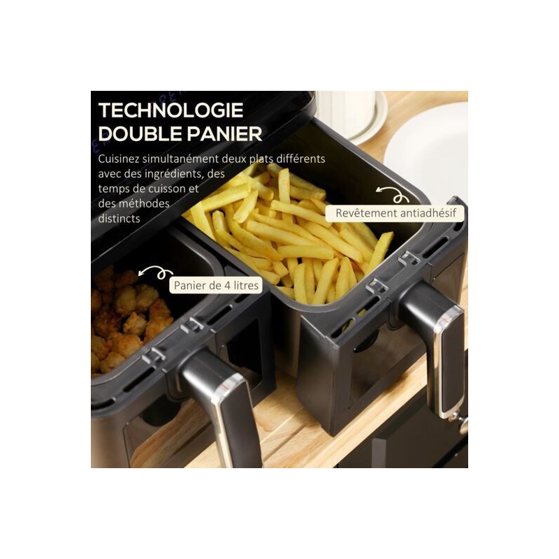 هذه المقلاة الهوائية متعددة الوظائف ذات السلتين هي الحل المثالي للقلي اليومي الخفيف والمقرمش بقليل من الزيت أو بدون زيت! ستسمح لك سعتها الإجمالية من 8L وبرامجها 8 المعدة مسبقًا بصنع العديد من الأطباق بالإضافة إلى البطاطس المقلية: شرائح اللحم والدجاج المشوي والأسياخ والأسماك والروبيان والمعجنات والفول السوداني وما إلى ذلك، وهو ما يكفي لإسعاد أصدقائك وعائلتك!