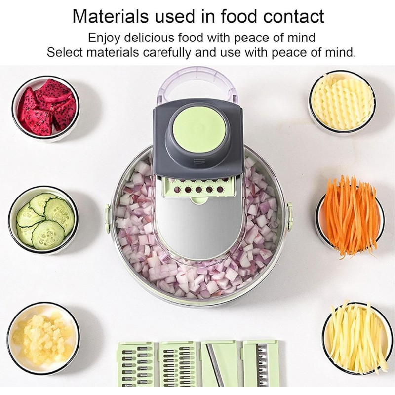 اكتشف قاطع الخضار متعدد الوظائف، أداة مطبخ 5 في 1 التي تبسط تحضير الطعام. مع شفرته المصنوعة من الفولاذ المقاوم للصدأ وتصميمه المريح، فإنه يتيح لك قطع، بشر، وشريحة مجموعة متنوعة من الخضروات بسهولة. مدمج وسهل التنظيف، هذه الإضافة مثالية لنظام غذائي صحي بينما تضيف لمسة عصرية لمطبخك.