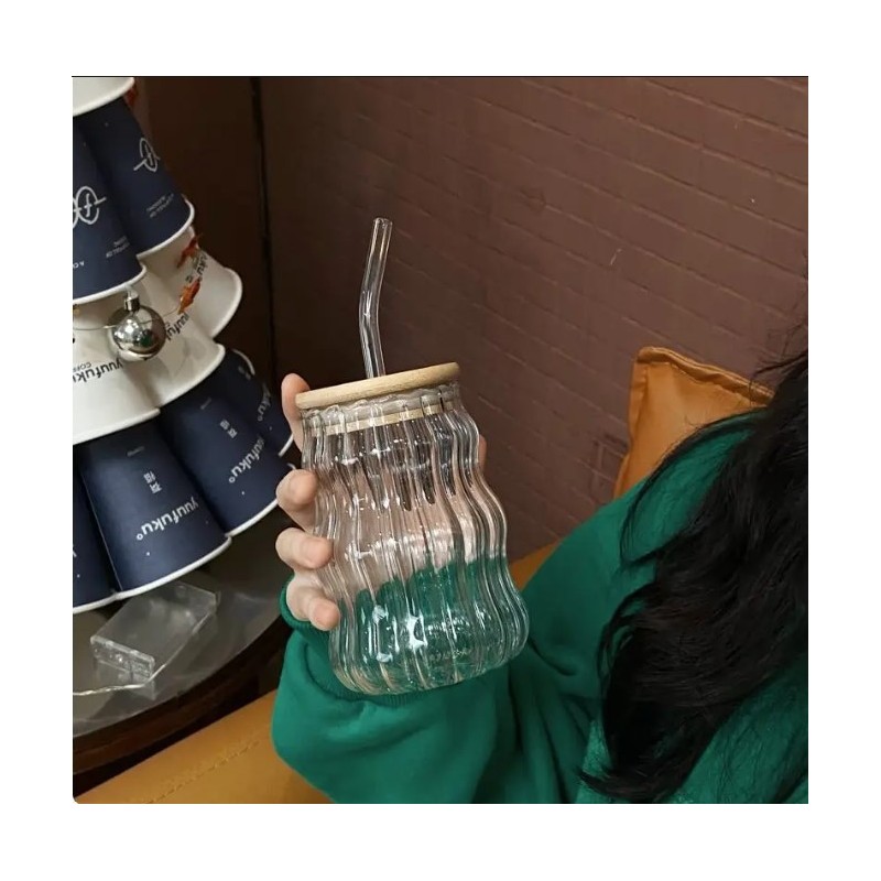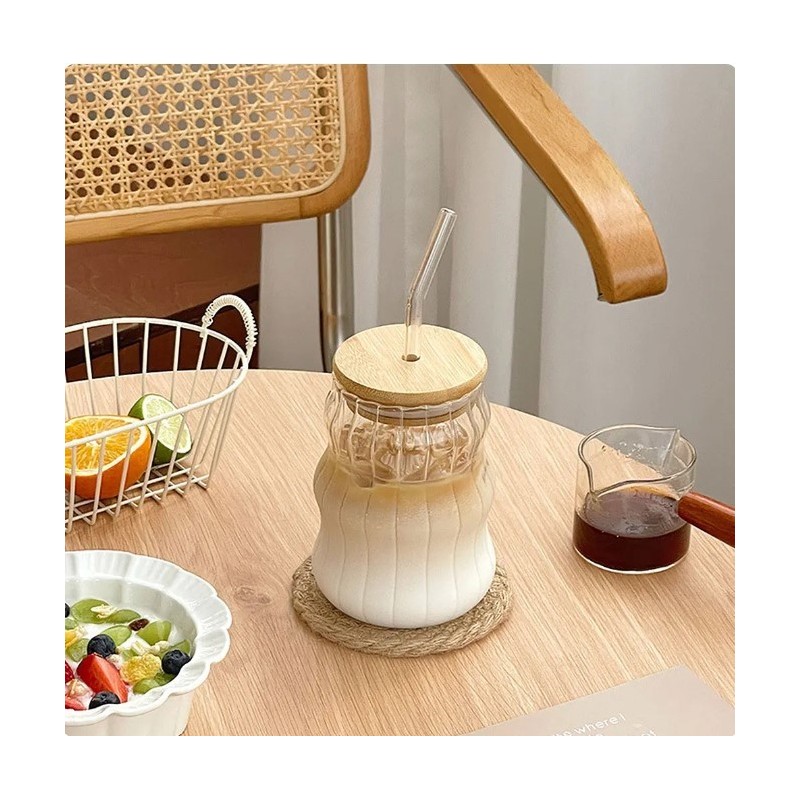 5: هذا الكوب الزجاجي مزود بغطاء من الخيزران وقش، مما يجعل من السهل تنظيفه بعد الاستخدام. يمكن تخزينها في خزائن المطبخ عند عدم استخدامها دون أن تشغل مساحة كبيرة