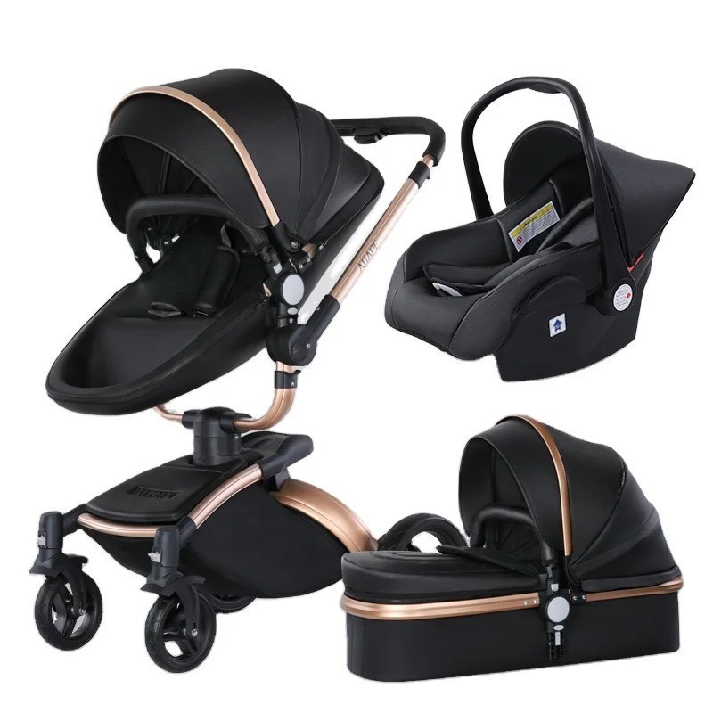عربة أطفال جلدية 3 في 1 خفيفة الوزن وآمنة على شكل بيضة