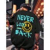 اكتشف تي شيرت القطن الحضري الفريد والمريح للغاية Never Look Back، المتوفر بمقاسات S إلى XXL. مصنوع من قطن ناعم وقابل للتنفس، يتميز هذا التي شيرت الواسع برسومات تركواز لافتة ووجه مبتسم مرح. مثالي للخروج غير الرسمي أو للتنسيق، يجمع بين الأناقة والراحة لمظهر حضري عصري يتناغم مع الروح الشبابية.