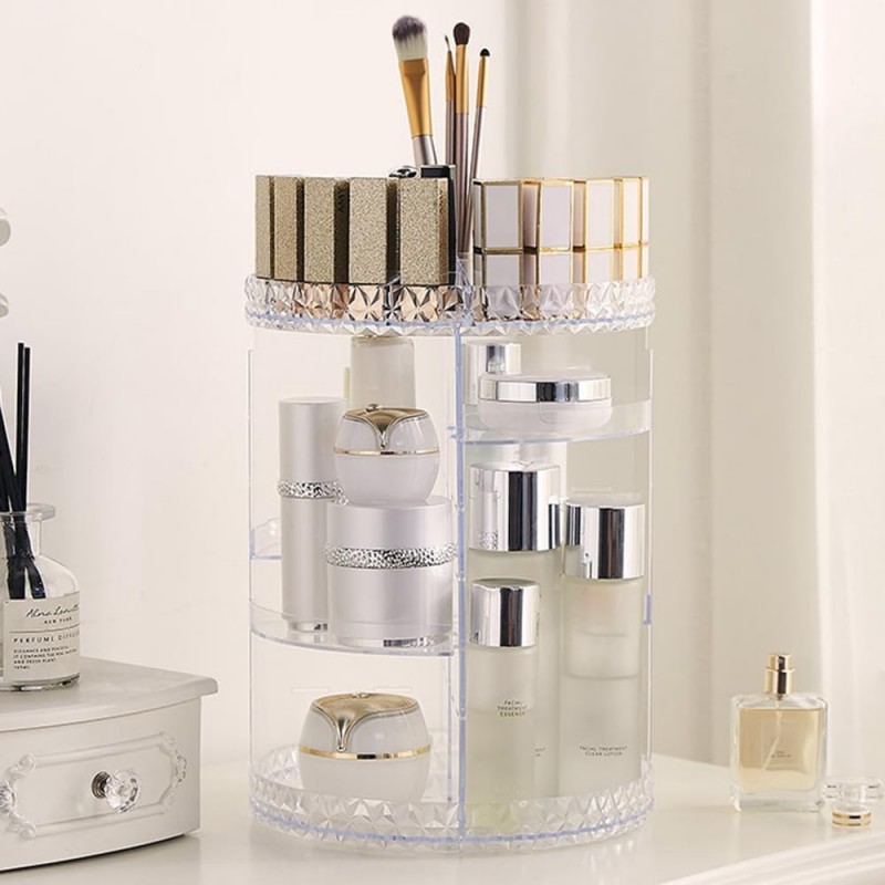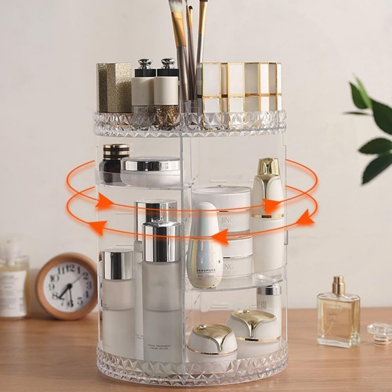 اكتشف الحل الأمثل لأساسيات جمالك مع منظم مستحضرات التجميل الخاص بنا، منظم المكياج الدوار 360 درجة. يتميز هذا الوحدة الأنيقة والعملية بتصميم أكريليك شفاف، ورفوف متعددة لتنظيم مثالي، ودوران مريح بزاوية 360 درجة. مثالي لأحمر الشفاه، ومنتجات العناية بالبشرة، والمزيد، فإنه يعزز أي منطقة تجميل بينما يحافظ على مستحضرات التجميل الخاصة بك في متناول اليد.