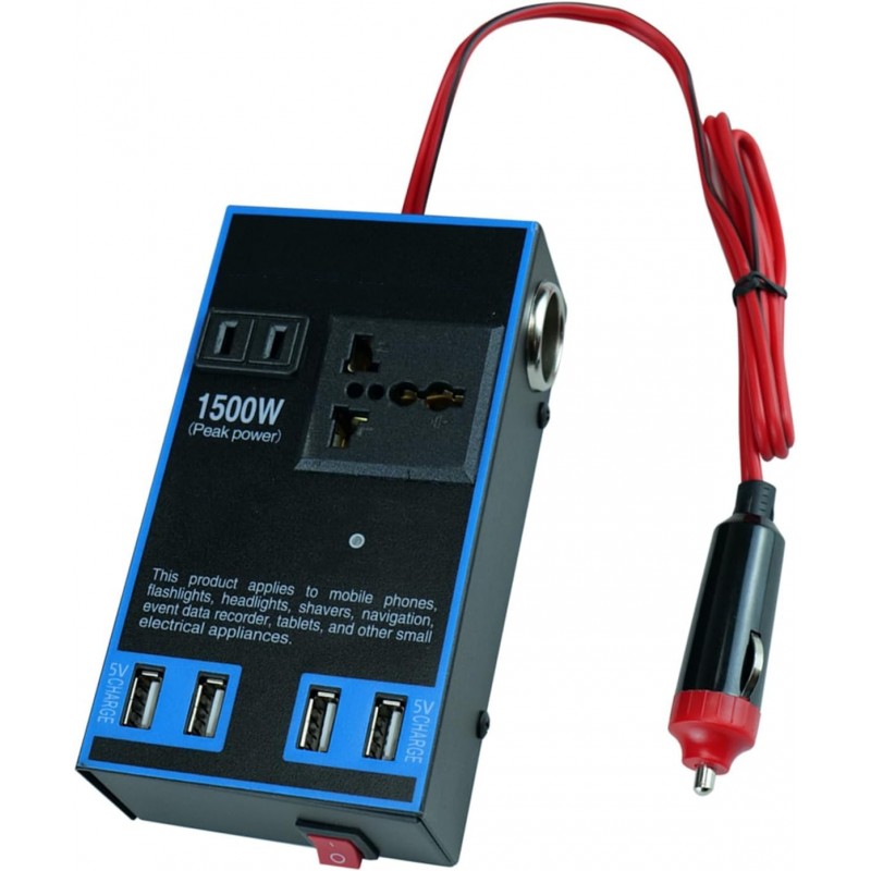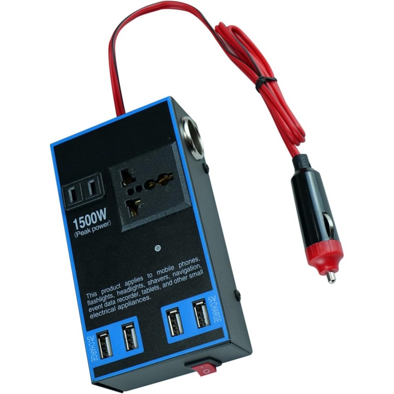 محول الطاقة Keenso 1500W للسيارات يقوم بتحويل 12V/24V DC بكفاءة إلى 110V/220V AC، مما يوفر مصدر طاقة موثوق لأجهزتك. مع مخرج AC واحد وثلاثة منافذ شحن USB، فهو مثالي لشحن أجهزة الكمبيوتر المحمولة والهواتف والمزيد أثناء الرحلات أو في حالات الطوارئ. خفيف الوزن وقابل للنقل، هذا المحول ضروري لأي مركبة.