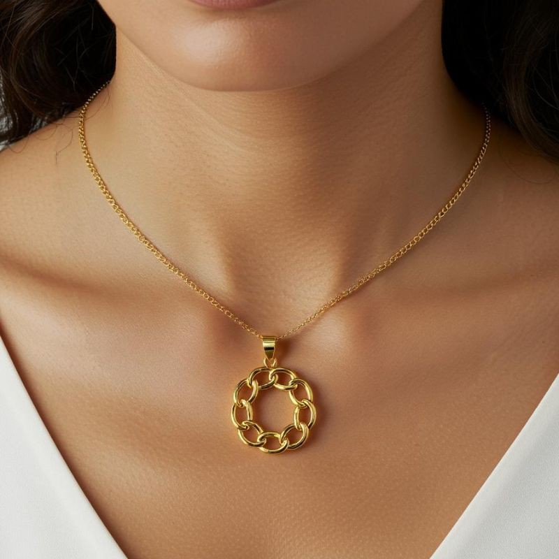 اكتشف أناقة قلادة  الخاصة بنا، التي تتميز بسلسلة مصنوعة بدقة وقلادة مذهلة على شكل حلقات مترابطة. هذه القطعة الفاخرة مثالية للمناسبات غير الرسمية والرسمية على حد سواء، حيث تعزز أي زي بتصميمها الخالد. مثالية للاستخدام اليومي أو كهدية مدروسة، تضيف هذه القلادة لمسة من الرقي إلى مجموعة مجوهراتك.
