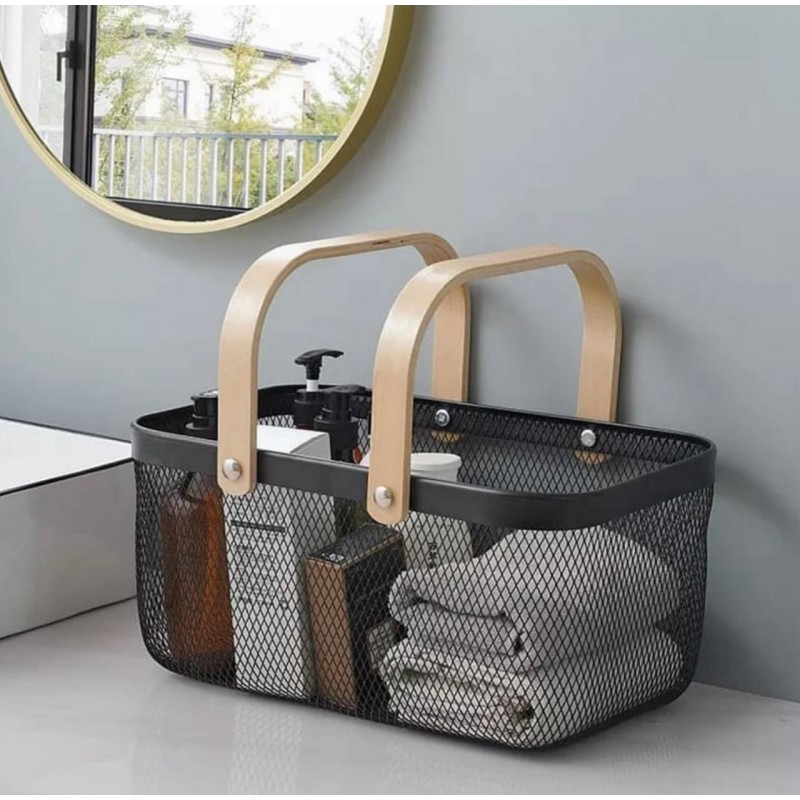 اكتشف سلة التخزين الحديثة لدينا، المصممة ببراعة مع هيكل شبكي أسود متين ومقابض خشبية أنيقة. هذه السلة متعددة الاستخدامات مثالية لتنظيم مستلزمات الحمام، والمجلات في غرفة المعيشة، أو عناصر المخزن في المطبخ. عزز مساحتك مع هذا الحل العملي والأنيق الذي يكمل أي نمط ديكور بسهولة.