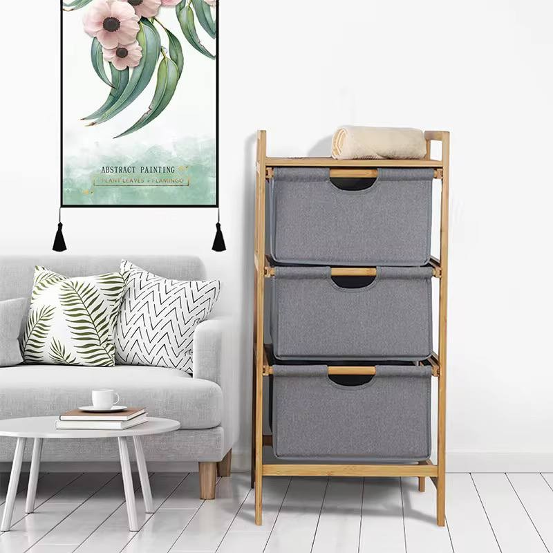وحدة تخزين من الخيزران مع 3 صناديق قماش - تصميم عصري وصديق للبيئة