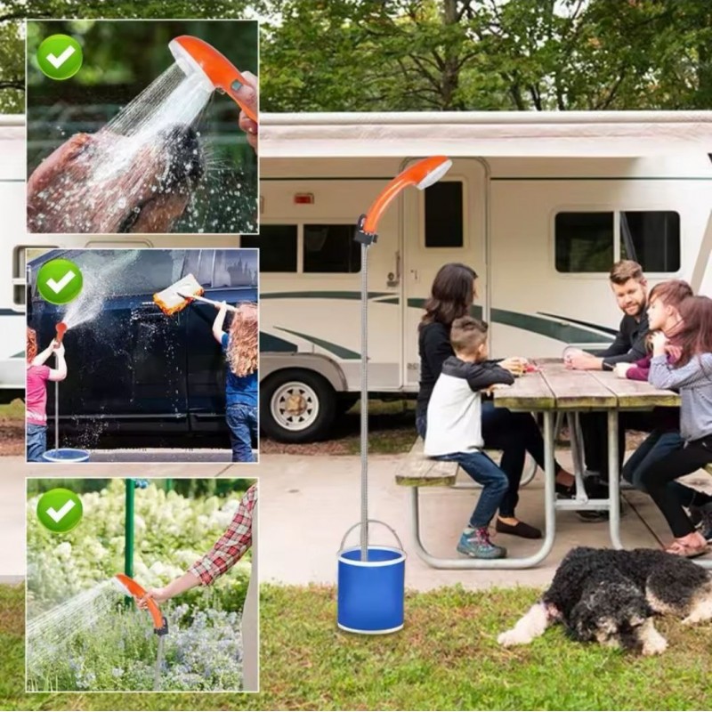 دش تخييم قابل لإعادة الشحن، صغير الحجم ومضاد للماء، يمنحك راحة إضافية في جميع مغامراتك الخارجية.