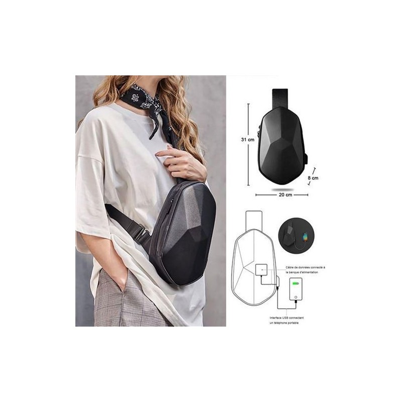اكتشف المزيج المثالي من الأناقة والوظائف مع حقيبة الكروس بودي الحديثة لدينا. تتميز بتصميم هندسي أنيق، ومواد صناعية متينة، ومنفذ شحن USB مدمج، هذه الإكسسوار المدمج مثالي للتنقل اليومي أو السفر. استمتع بالراحة بدون استخدام اليدين بينما تعرض إحساسك بالأزياء المعاصرة مع هذه الحقيبة السوداء الكروس بودي المتعددة الاستخدامات.