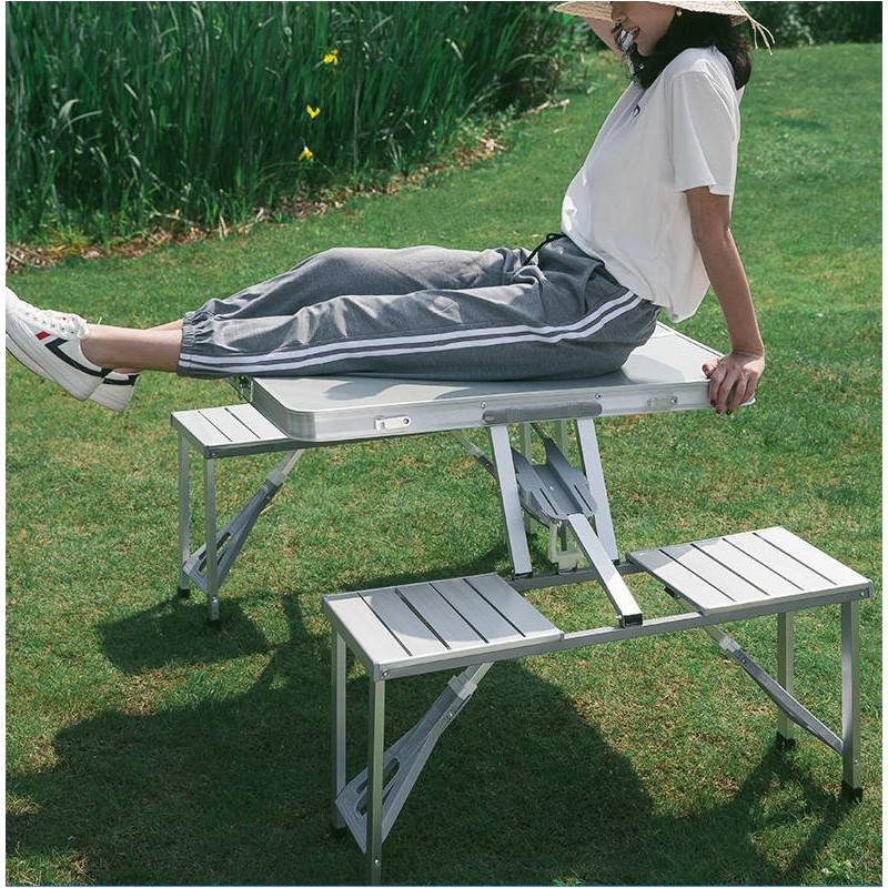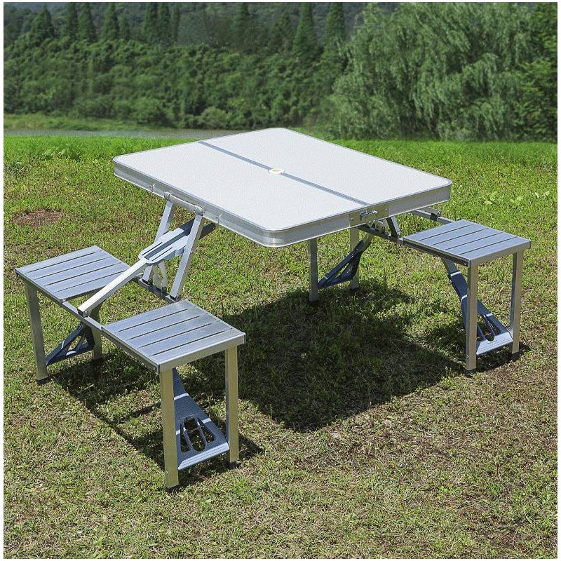 تتميز مجموعة الطاولة والمقاعد القابلة للطي هذه بكونها قطعة أساسية لأي شخص يحب قضاء الوقت في الهواء الطلق. فتصميمها خفيف الوزن يجعلها سهلة النقل، بحيث يمكنك أخذها معك إلى حيث تقودك مغامراتك. ومع مظهرها البسيط الذي يتماشى تمامًا مع الاتجاهات الحديثة، يجمع هذا الحل للأثاث بين العملية والأناقة.