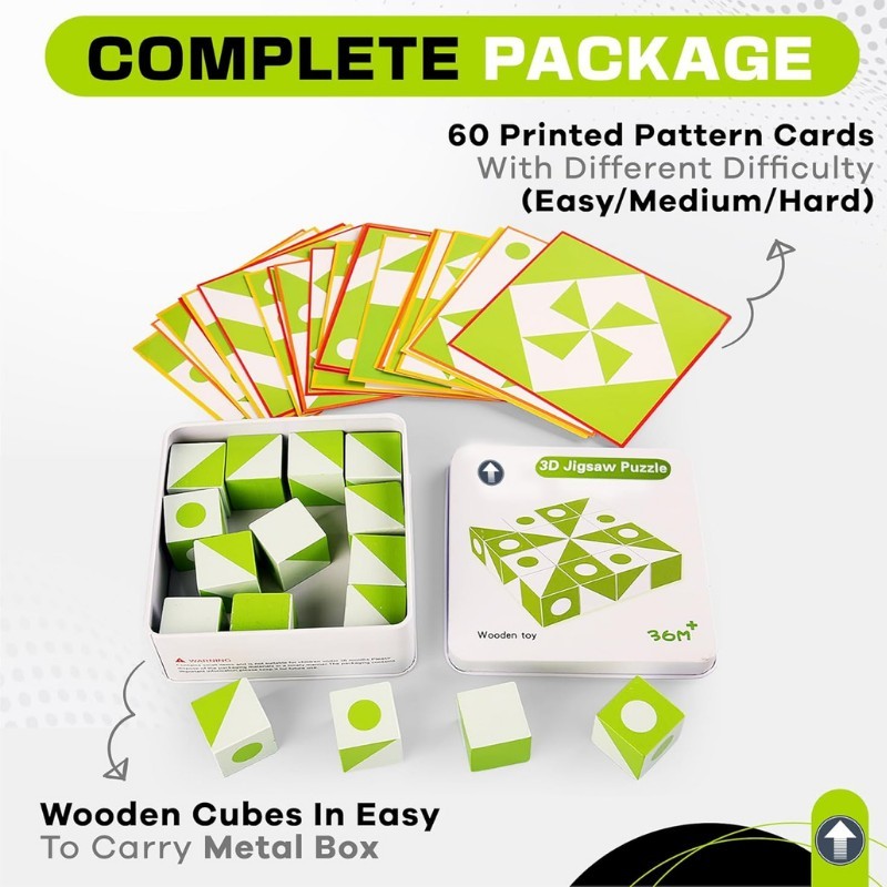 أطلق العنان لإبداعك ومهاراتك في حل المشكلات مع لعبة البازل الخشبية ثلاثية الأبعاد. تأتي هذه الحزمة الكاملة مع 60 بطاقة نمط مطبوعة، كل منها تقدم تحديًا فريدًا بمستويات صعوبة سهلة ومتوسطة وصعبة. يتضمن المجموعة مكعبات خشبية عالية الجودة مخزنة في صندوق معدني مريح لسهولة الحمل. مثالية للأطفال والبالغين، هذه اللعبة لا توفر الترفيه فحسب، بل تعزز أيضًا التنمية المعرفية، والوعي المكاني، والتفكير المنطقي. سواء في المنزل أو أثناء التنقل، استمتع بساعات لا حصر لها من المرح التعليمي.