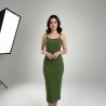 فستان ميدي أنيق باللون الأخضر الزيتوني