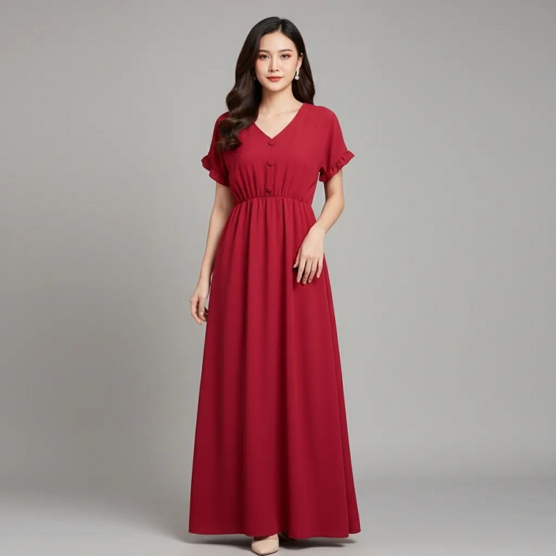 تألقي بأناقة مع هذا الفستان الماكسي البورغندي الأنيق، المثالي لأي مناسبة. تصميمه المتدفق ولونه الغني يجعله عنصرًا أساسيًا في خزانة ملابسك.