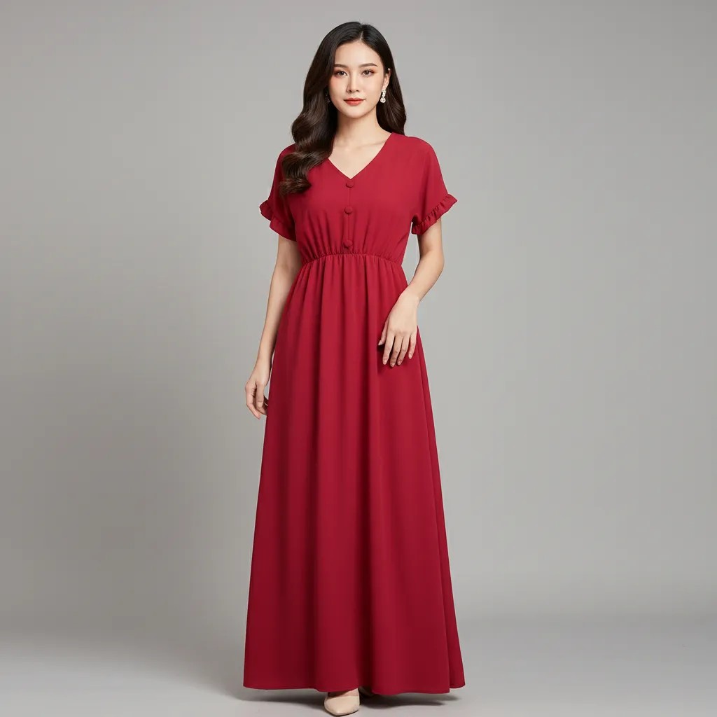فستان ماكسي بورغندي أنيق