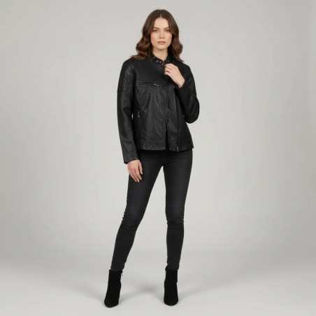 بدلة سوداء أنيقة مع حقيبة يد مصمم