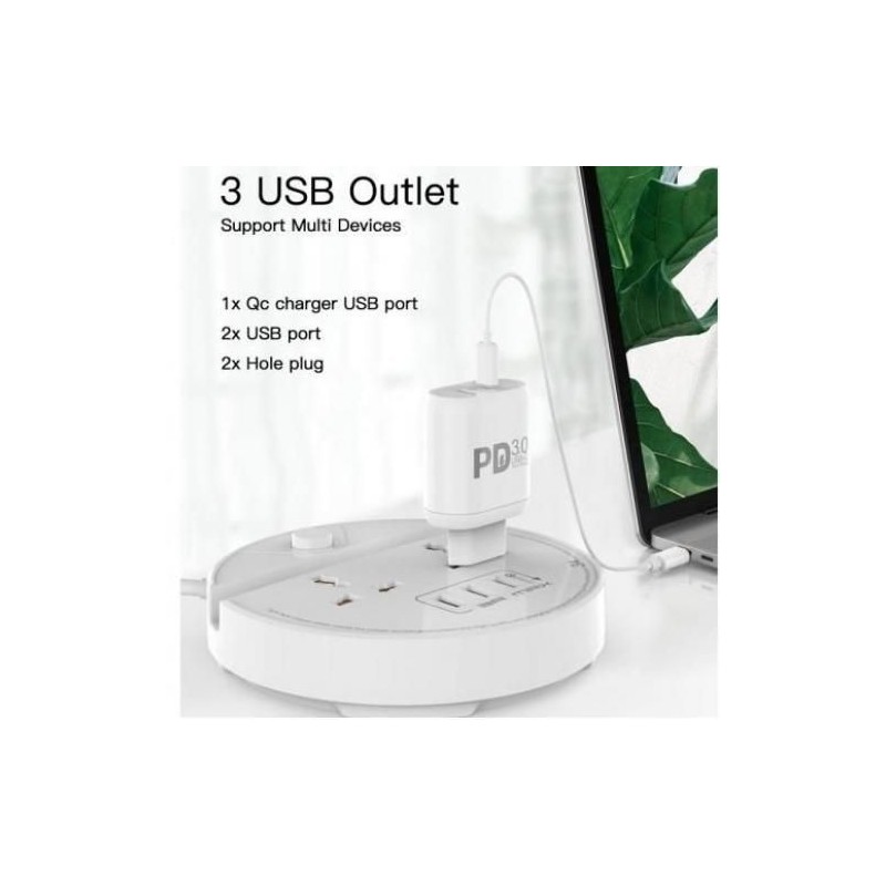 اكتشف شاحن موكسم السريع مع 3 منافذ USB شحن فائق السرعة مع حامل موبايل، وهو ملحق لا غنى عنه لجميع احتياجاتك في الشحن. مع قدرة إخراج إجمالية تبلغ 30 واط، تم تصميم هذا الشاحن لتقديم تجربة شحن سريعة وفعالة. يتميز هذا الطراز المبتكر بـ ثلاثة منافذ USB، مما يسمح بشحن عدة أجهزة في وقت واحد. سواء كنت بحاجة إلى شحن هاتفك الذكي أو جهازك اللوحي أو أي جهاز USB آخر، فإن هذا الشاحن سيلبي توقعاتك. بفضل توافقه مع تقنية QC 3.0، يضمن وقت شحن أقل دون المساس بالسلامة. مصمم للاستخدام في جميع أنحاء العالم، يعمل شاحن موكسم على نطاق واسع من الجهد يتراوح بين 100 إلى 240 فولت. وهذا يعني أنه يمكنك استخدامه براحة بال أثناء رحلاتك الدولية دون الحاجة إلى محول. خفيف ومضغوط، تصميمه الدائري يسهل حمله في حقيبتك أو حقيبة السفر الخاصة بك. مصنوع من بلاستيك متين، فهو ليس فقط مقاومًا ولكن أيضًا أنيق بفضل تشطيبه الأبيض العصري الذي يتناسب تمامًا مع أي بيئة. مع ميزات مثل مؤشر LED للإشارة إلى حالة الشحن وقدرة قصوى تصل إلى 3 أمبير، يضمن هذا الشاحن أن تكون أجهزتك مشحونة بسرعة وكفاءة. لا تدع البطاريات الضعيفة تبطئك، اختر شاحن موكسم السريع مع 3 منافذ USB شحن فائق السرعة مع حامل موبايل وابقَ متصلاً أينما كنت!