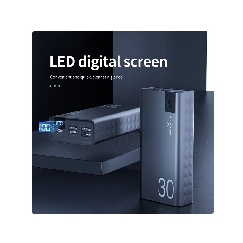 بنك طاقة بسعة 30000 مللي أمبير بقدرة 18 وات وشاحن ذو سعة كبيرة وشاشة LCD وبطارية خارجية مساعدة محمولة