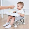 لوحة ألوانه المحايدة، التي تجمع بين الفضي أو الرمادي الفاتح والمقعد والصينية البيضاء النقية، تندمج بسلاسة مع أي ديكور المنزل. الصينية العريضة والمسطحة ليست فسيحة فحسب بل سهلة التنظيف أيضًا، مما يجعل وقت الوجبات خاليًا من المتاعب. الحافة الخفيفة المحيطة بالحواف تساعد في احتواء الانسكابات، مما يوفّر راحة البال أثناء التغذية.