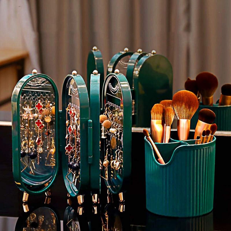 اكتشف صندوق المجوهرات مع مرآة، قلادة شاشة قابلة للطي بأربعة أبواب، وهو ملحق أنيق لتنظيم مجوهراتك. بتصميمها العصري باللون الأخضر الزمردي وأبوابها الأربعة الشفافة، توفر رؤية مثالية. مصنوعة من مواد مستدامة، تحمي كنوزك بينما تضيف لمسة من الأناقة إلى مساحتك.