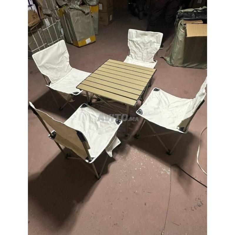 اكتشف مجموعة الطاولة القابلة للطي وكراسي التخييم، الحل المثالي لمغامراتك في الهواء الطلق. مصممة للراحة والعملية، تتكون هذه المجموعة من طاولة متينة وأربع كراسي قابلة للطي، مثالية للنزهات والشواء أو رحلات التخييم. مواد عالية الجودة: الطاولة مصنوعة من سطح MDF متين وإطار فولاذي يضمن ثباتًا استثنائيًا. الأرجل المصنوعة من الألمنيوم الخفيف تسهل النقل مع ضمان متانة لا مثيل لها. أبعاد عملية: مع أبعاد إجمالية مطوية تبلغ 85.5 × 10 × 33.5 سم (طول × عرض × ارتفاع)، فإن هذه المجموعة سهلة التخزين في سيارتك أو في مساحتك الخارجية. قياسات الطاولة هي 85.5 × 67.5 × 67 سم (طول × عرض × ارتفاع)، مما يوفر مساحة كافية لاستيعاب ما يصل إلى أربعة أشخاص بشكل مريح. تصميم وظيفي: المجموعة مزودة بثقب للمظلة في أعلى الطاولة حتى تتمكن من الاستمتاع بظل مريح خلال الأيام المشمسة. تصميمها القابل للطي يسمح بتركيب سريع وسهل. قابلية نقل مثالية: بفضل مقبضها المدمج في الحقيبة القابلة للطي، يصبح نقل هذه المجموعة أمرًا سهلاً. سواء كانت ليوم في الحديقة أو هروب للتخييم في الطبيعة، ستقدر خفتها وسهولة استخدامها. مجموعة الطاولة القابلة للطي وكراسي التخييم تجمع بين الأناقة الحديثة والوظائف العملية. دلل نفسك بهذه التجربة الودية خلال رحلاتك الخارجية القادمة!