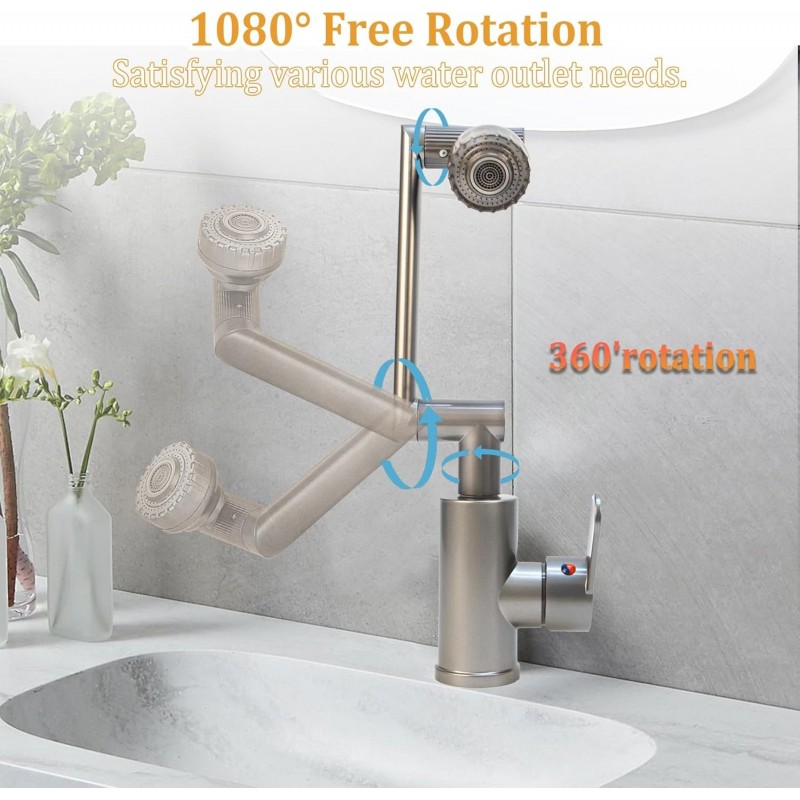 قم بترقية حمامك مع مُهوِّي الصنبور 1080°، الذي يتميز بوضعين ودوران متعدد الاتجاهات قابل للتعديل بزاوية 360°. مصنوع من سبيكة الزنك المتينة، يعزز هذا الصنبور القابل للتدوير كفاءة المياه بينما يقدم تصميمًا أنيقًا. استمتع بتدفقات قوية أو لطيفة مصممة وفقًا لاحتياجاتك، مما يجعله الخيار المثالي للأحواض الحديثة التي تركز على الأناقة والوظائف.
