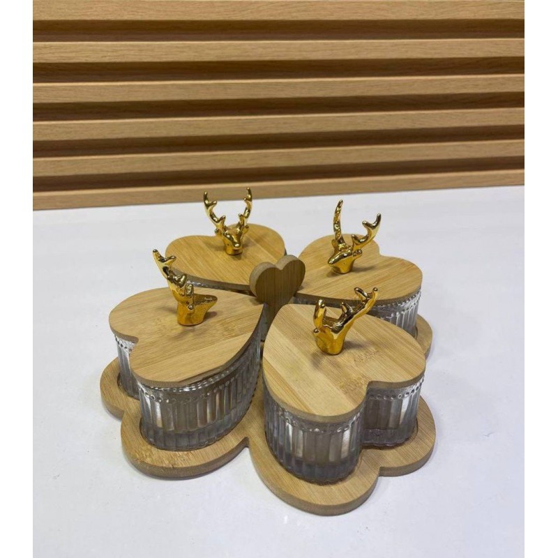 صناديق خدمة خشبية على شكل قلب مزينة بخشب ذهبي