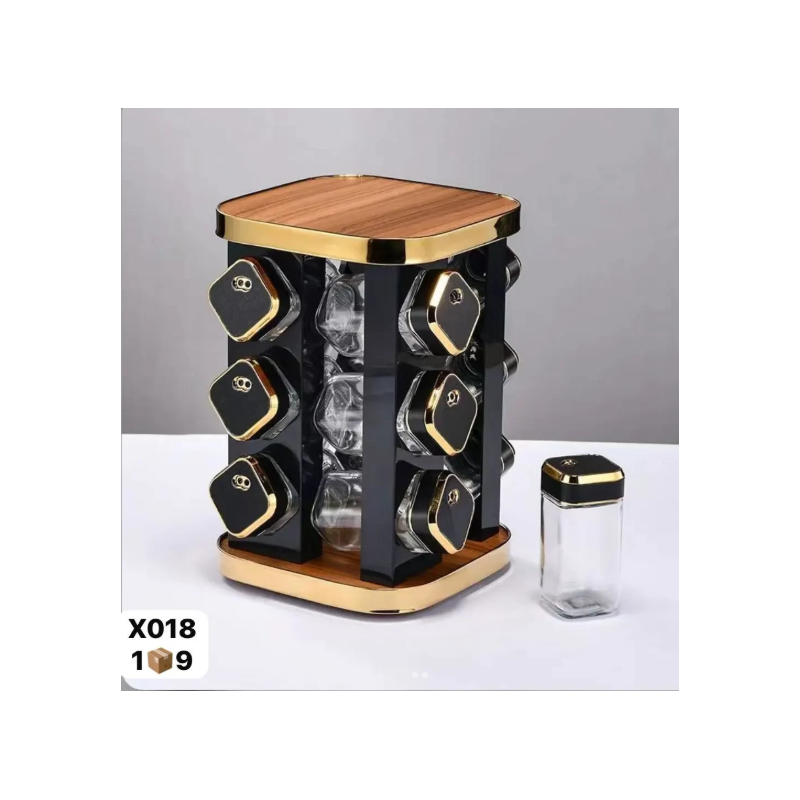 اكتشف المزيج المثالي من الأناقة والوظائف مع رف التوابل العصري لدينا. مصمم بشكل أسطواني متعدد الطبقات، يحتوي على عشرة برطمانات زجاجية شفافة مع أغطية ذهبية أنيقة لتسهيل التعرف على التوابل. مثالي للمطابخ الصغيرة، هذه الإضافة الأنيقة لا تنظم توابلك فحسب، بل تعزز أيضًا ديكور مطبخك. ارتق بتجربة الطهي الخاصة بك اليوم!
