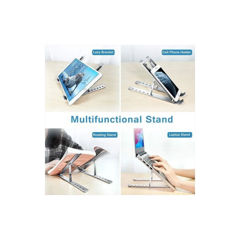 اكتشف حامل الكمبيوتر المحمول، والتابلت، والهاتف المصنوع من الألمنيوم، القابل للطي. يوفر هذا الحامل الخفيف والمتين قابلية ضبط مثالية لراحة ergonomique. مع تصميمه المدمج وتشطيبه العصري، فهو مثالي للمكتب أو أثناء التنقل. استمتع بوضعية أفضل أثناء العمل أو مشاهدة المحتوى المفضل لديك.