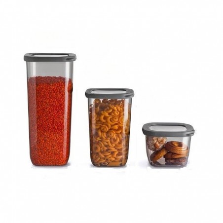 Set of 3 plastic containers with lids for rice, flour, and cereals