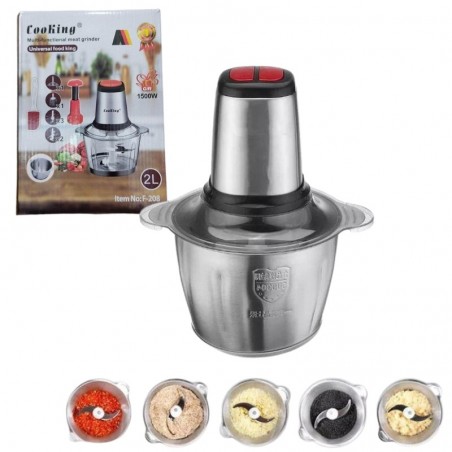 Electric chopper 3/2 Liter, multifunction, 2 stainless steel and glass bowls, 5 blades, beater 170 MAD