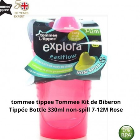 Tommee Tippee Explora Easiflow Non-Spill Bottle 330ml, 7-12M, Rose