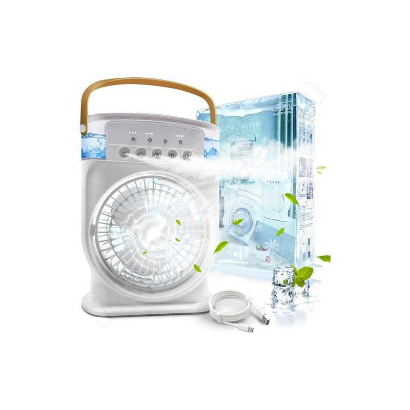 Introducing our latest compact air cooler fan, designed to enhance your comfort in any setting. This innovative cooling solution features a sleek, rectangular design with rounded edges, making it a stylish addition to your home or office decor. The main body is crafted from durable plastic, ensuring a lightweight yet sturdy frame that is easy to transport. With its soft white hue and translucent blue accents, this air cooler fan not only cools but also adds a modern touch to your space. A standout feature of this fan is the convenient brown handle, allowing for effortless portability. Whether you need relief during hot summer days at home or while traveling, this compact unit fits perfectly on desks and tabletops without taking up too much space. The user-friendly control panel located on the front offers multiple buttons for power and speed settings, giving you complete control over your cooling experience. The air cooler utilizes an advanced w ater-based cooling system, emitting a fine mist that ensures optimal comfort as it circulates cool air throughout the room. This product ships within just 8 hours, emphasizing our commitment to quick delivery so you can enjoy immediate relief from heat. Ideal for personal use in various environments such as homes and offices, our compact air cooler fan combines functionality with aesthetic appeal. Experience refreshing breezes wherever you go with this versatile and efficient solution. Don’t let the heat slow you down; invest in our compact air cooler fan today!
