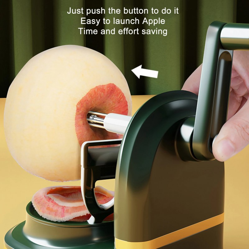 Discover the ultimate kitchen gadget designed for effortless food preparation. This ergonomic peeler and corer features a sleek deep green body with elegant metallic accents. Its manual hand crank ensures easy operation, while the built-in catchment area simplifies cleanup. Perfect for peeling apples and potatoes, this stylish tool enhances efficiency in any modern kitchen.
