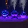 Introducing the innovative projector humidifier, a perfect blend of functionality and aesthetic appeal for your home. This unique device not only enhances your indoor air quality but also transforms your living space into a tranquil oasis with its captivating light projections. The spherical design of the humidifier resembles an elegant dome, featuring a glossy black surface adorned with vibrant cosmic patterns like stars and planets. This striking appearance makes it an eye-catching addition to any room. The clear circular base, complemented by a geometric wooden frame, provides stability while adding a touch of modern sophistication. Equipped with advanced ultrasonic technology, this humidifier operates silently, dispersing fine mist to maintain optimal humidity levels without disturbing your peace. It doubles as a light projector, casting enchanting images or colors onto nearby surfaces, creating an inviting atmosphere ideal for relaxation or meditation. The projector humidifier comes packaged in an attractive white box labeled PROJECTOR HUMIDIFIER, showcasing various colorful designs such as green, gold, and blue. Included in the package is a convenient USB cable, allowing for easy portability and versatile power options. A small dark glass bottle labeled Taj Express accompanies the unit; this essential oil bottle enables you to enhance your experience by adding soothing scents through aromatherapy. Whether placed in bedrooms, nurseries, or meditation spaces, this multifunctional device caters to those seeking both comfort and style. Elevate your home ambiance today with our stunning projector humidifier—where air quality meets visual delight!