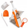 Discover the multifunctional plastic vegetable and fruit press, adjustable and safe, hand slicer, the kitchen tool that will revolutionize your cooking experience. Designed for cooking enthusiasts, this compact device combines modern style with exceptional functionality. Its high-quality plastic construction ensures remarkable durability while being easy to clean. With its ergonomic design, this slicer features a transparent slicing chamber that allows you to monitor the cutting process. The vertical press handle ensures safe and efficient use, keeping your hands away from sharp blades. Thanks to the adjustable blades, you can choose the perfect thickness for your slices, ranging from delicate finesse to more generous cuts. The ideal accessory for every kitchen! Whether you're preparing fresh salads or garnishing your favorite dishes, this slicer adapts to all your culinary needs. Included with the product is a handy cleaner, a transparent container to collect sliced food, and a small scoop to facilitate transferring ingredients to your dish. Safe and versatile, the multifunctional vegetable and fruit press is perfect for both amateur and professional cooks. Don't let food preparation become a chore, simplify your life with this essential tool that will make every meal even more delicious! Invest in your kitchen today with this innovative slicer.