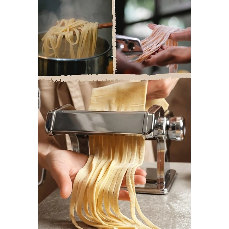 Discover the Noodle Pasta Cutter Machine, a must-have for all cooking enthusiasts eager to make fresh pasta at home. Designed with a sturdy stainless steel frame, this machine combines durability and elegance, bringing a modern touch to your kitchen. With its compact design, it fits perfectly on your countertop without taking up space. The multiple rollers allow you to easily flatten the dough, while the built-in cutting mechanism gives you the option to create different shapes such as fettuccine, lasagna, or even spaghetti. Imagine the joy of using fresh ingredients to whip up your favorite dishes! Using it is simple thanks to an ergonomic crank that ensures smooth and enjoyable operation. The handle is designed to provide a comfortable grip, allowing you to roll out and cut your pasta effortlessly. Aesthetically, this machine features a silver finish with black accents that add character to its design. Its smooth surface also makes cleaning easy after use. The Noodle Pasta Cutter Machine is not just a practical tool; it also embodies traditional Italian culinary art. Whether you're a novice or an experienced chef, this device will enhance your cooking experience by making each dish unique and flavorful. Don't wait any longer to transform your kitchen into a true gastronomic workshop! With this innovative appliance, get ready to impress your friends and family with homemade dishes worthy of a restaurant.