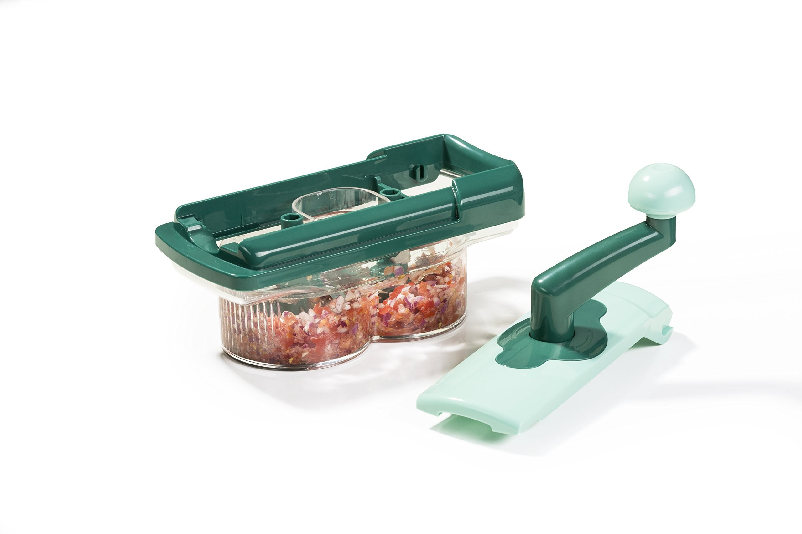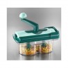 Discover the Smart Manual Twist Food Processor, an essential for any modern kitchen. This food processor innovatively allows you to chop, mix, and knead without electricity, making meal preparation simpler and faster. With its transparent 625 ml bowl, you can easily prepare soups, sauces, or even dips in just seconds. Thanks to its 5 ultra-sharp blades, there’s no difficulty in crushing hard foods like ice cubes or parmesan. Whether it’s chopping fresh herbs or mixing a homemade vinaigrette, this device is designed to meet all your culinary needs. The ergonomics of the Smart Manual Twist Food Processor stand out with its convenient pull mechanism and compact design that fits perfectly in small kitchens. Made from durable, dishwasher-safe plastics, this device ensures easy use and minimal maintenance. With its soothing green color and modern lines, this food processor is not only functional but also adds an aesthetic touch to your workspace. Its smart design allows for easy storage with its airtight lid that keeps your preparations fresh. Simplify your cooking experience with the Smart Manual Twist Food Processor – the perfect tool for those who appreciate artisanal quality in their kitchen while wanting to save time during meal preparation.