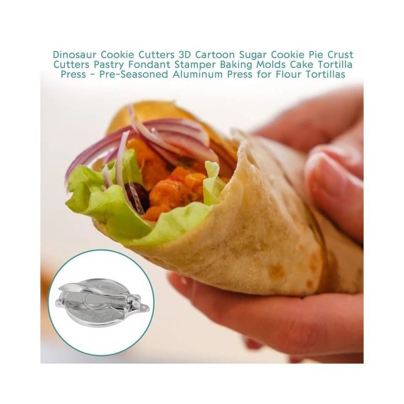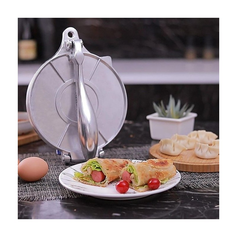 This tortilla press is ideal for making large quantities of corn or flour tortillas and transforming them into tortillas or burritos, perfect for pancakes. You can make tortillas, patacones, empanadas, and quesadillas at home quickly and easily. This tortilla press owns great durability and stability, lasting for life time use. It is durable and easy to clean. A good helper in your kitchen. This taco maker can be cleaned with a slightly damp cloth, nothing else needed, very convenient to prepare for next use. aluminum alloy: The tortilla maker is made of aluminum alloystrong and durable: The tortilla press maker is made of aluminum, strong and durable.decor: You can make bread and cakes, or whatever decor you like for your home. The tortilla maker has a stainless steel decor.Safe: The mold is made of non-stick material, just put it in the dishwasher or use a wire brush to rinse with water and dry quickly after use. which is safe and environmentally friendly.
