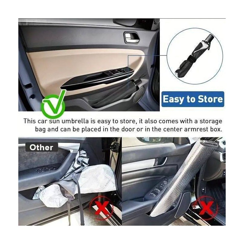 Introducing our innovative vehicle sunshade, the perfect accessory for enhancing your driving experience. Designed to fit seamlessly within your car, this umbrella-like structure effectively covers your windshield and dashboard, providing optimal protection against harmful UV rays. The sunshade features a sleek black design, complemented by stylish yellow accent lights that not only enhance its aesthetic appeal but also improve visibility. Crafted from a durable, reflective fabric, it is engineered to block sunlight and significantly reduce heat buildup inside your vehicle. With its sturdy metal or high-quality plastic frame, this sunshade ensures long-lasting performance while maintaining structural integrity when deployed. Its size is tailored to fit standard vehicle windshields effortlessly, making it an ideal choice for most car owners. Installation is a breeze thanks to the spring-loaded mechanism that allows for easy expansion and contraction. When not in use, simply store the sunshade in its convenient holder or sleeve included with the product. This thoughtful feature enhances accessibility and ensures you can quickly deploy it whenever needed. This vehicle sunshade serves multiple purposes: protecting your car’s interior from fading due to UV exposure and keeping cabin temperatures comfortable during hot weather conditions. It’s perfect for anyone looking to preserve their vehicle's components while enjoying a more pleasant driving environment. If you're seeking an effective solution that combines functionality with style, our innovative vehicle sunshade is the answer. Elevate your driving comfort today with this essential automotive accessory!