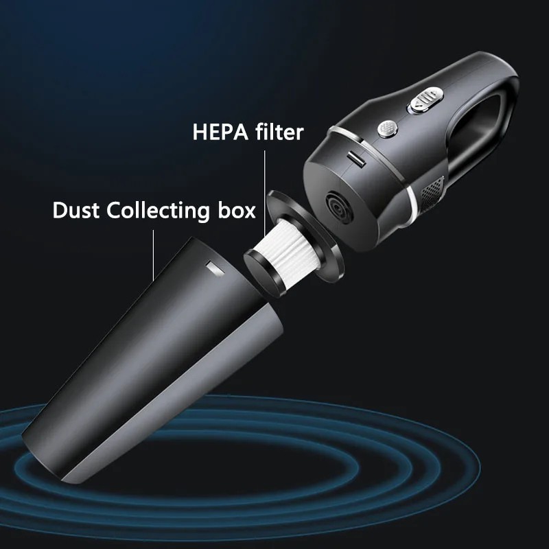 Discover the efficiency of the Wireless Car Vacuum, Books, Auto, Home, an essential tool for keeping your spaces clean and organized. With an impressive suction power of 20 Kpa, this lightweight vacuum is designed to easily eliminate debris, crumbs, and even pet hair. Equipped with a removable 2200 mAh battery, it offers up to 35 minutes of uninterrupted runtime. This makes it perfect for extended cleaning sessions in your home or car. The electric brush head with LED lights allows access to dark and hard-to-reach areas under furniture or in your vehicle. The Wireless Car Vacuum, Books, Auto, Home is also equipped with a sealed 4-stage HEPA filtration system that captures up to 99.99% of fine particles. This washable filter ensures that you breathe fresh air while avoiding secondary pollution when emptying the dustbin. Its ergonomic design with an easy-to-grip handle ensures optimal maneuverability. With the versatile accessories provided – including a long flat nozzle and a dusting brush – you can effectively clean above the ground as well as in hard-to-reach places. Lightly designed with a total weight not exceeding 1.5 kg, this vacuum is easily portable wherever you need it. Whether it's to maintain cleanliness in your car or to do a quick clean at home, the Wireless Car Vacuum, Books, Auto, Home will meet your expectations perfectly.