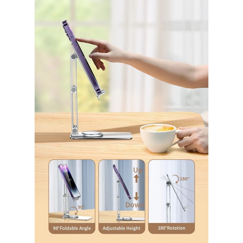 Discover the Adjustable Metal Desktop Phone Holder, designed to provide an optimal user experience. With its sturdy construction and adjustable arms, this holder accommodates all your devices. Ideal for video calls or watching movies, it combines modern style and practical functionality in your office or at home.