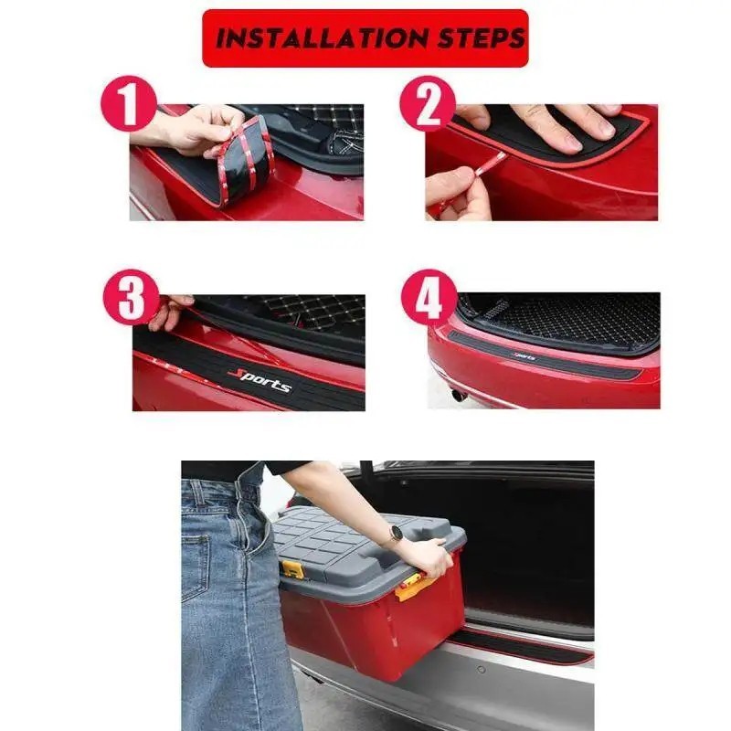 Protect your vehicle with the Rear Trunk Bumper Protection Mat, an essential accessory for all car, truck, and SUV owners. This mat is designed to fit most vehicles thanks to its universal dimensions, providing optimal coverage against scratches and damage. Made from durable rubber, this mat withstands daily wear while maintaining its sleek appearance. Its textured surface with non-slip grooves prevents your items from sliding during transport, ensuring additional protection. Whether you're loading groceries or sports equipment, this mat is here to preserve the integrity of your rear bumper. Installation is a breeze thanks to its self-adhesive design. Simply clean the surface, remove the protective film, and apply the mat to your bumper. No additional tools needed! In addition to its easy installation, it can also hide existing scratches and give your vehicle a fresh look. Rear Trunk Bumper Protection Mat stands out with its modern aesthetic featuring a classic black finish accented by a striking red border that catches the eye while adding a sporty touch. It's not only a practical choice but also stylish, fitting seamlessly into any vehicle interior. Don't wait any longer to protect your investment! Choose our Protection Mat today and enjoy peace of mind when loading and unloading in your rear trunk.