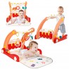 This 2-in-1 play area and baby walker offers a convenient dual option for keeping your child entertained. The play surface provides a fun space where little ones can sit, lie down, play, kick, stand and learn to walk. The multifunctional walker includes a piano, an armrest for learning to walk and 5 removable pendants. It encourages the development of coordination in toddlers while stimulating their curiosity with musical notes.
