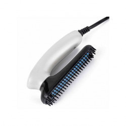 Introducing the Pro Lisseur Cheveux Et Barbe, your ultimate grooming companion designed to effortlessly straighten both hair and beard. This innovative tool combines advanced technology with user-friendly features, making it an essential addition to any modern man's grooming kit. The Pro Lisseur Cheveux Et Barbe boasts a sleek and ergonomic design that resembles a brush, ensuring easy handling during use. Its heat-resistant bristles penetrate through hair effectively, providing even heat distribution while reducing frizz for a polished look. Whether you have curly, wavy, or unruly hair types, this straightener is perfect for achieving that sleek finish. With its compact dimensions, the Pro Lisseur Cheveux Et Barbe is ideal for both home use and travel. The stylish gray handle offers a comfortable grip while the black brushing surface enhances its aesthetic appeal. Blue accents not only add flair but also indicate cooling zones or heat indicators for added safety. This versatile tool allows you to quickly shape your beard or style your hair with ease. Simply run the heated brush through your strands to soften and smooth them out in no time at all! The Pro Lisseur Cheveux Et Barbe is suitable for various hair lengths and types, making it an indispensable part of your daily grooming routine. Elevate your styling game with this efficient appliance that merges functionality with contemporary design. Experience effortless grooming like never before with the Pro Lisseur Cheveux Et Barbe – where style meets practicality!