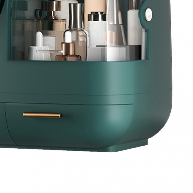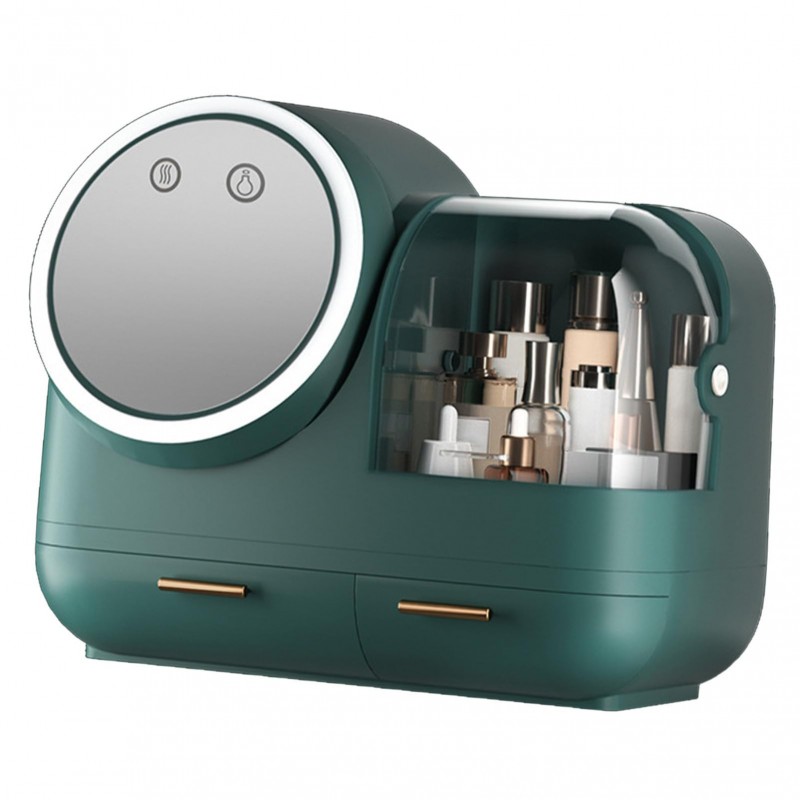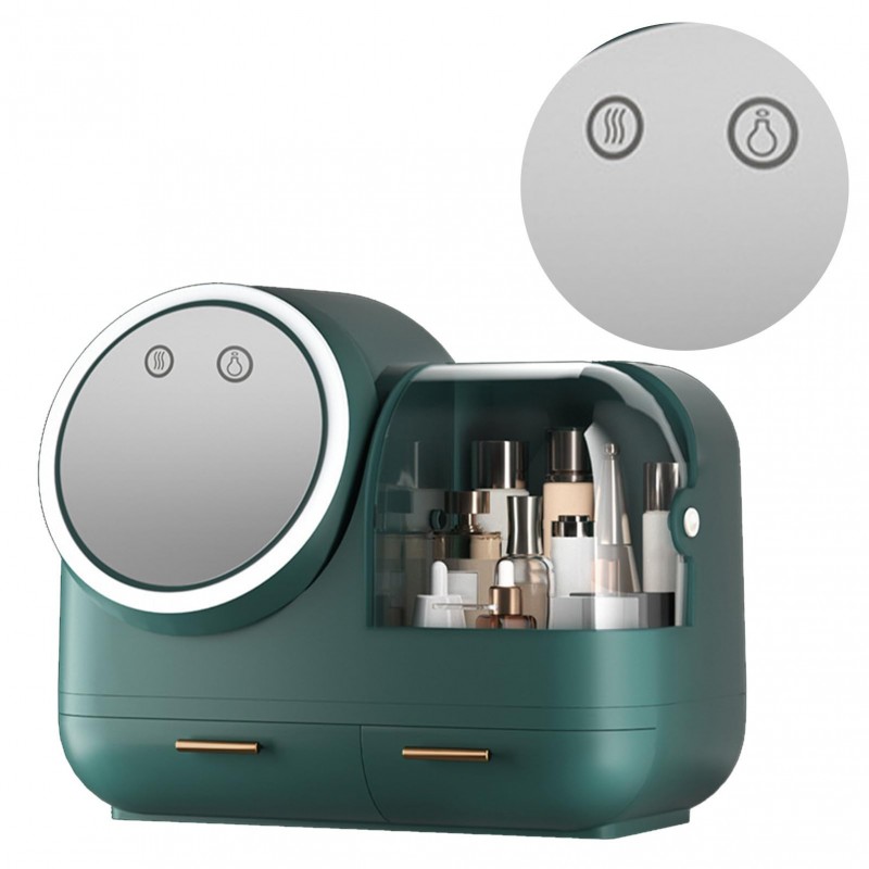 Discover the Fan Mirror Makeup Case, fan mirror makeup case with 2 drawers and LED light for women. With its sleek design and practical features, it offers optimal storage space for your cosmetics. Enjoy integrated LED lighting and a rotating mirror for perfect makeup at any time. Ideal for home or on the go.
