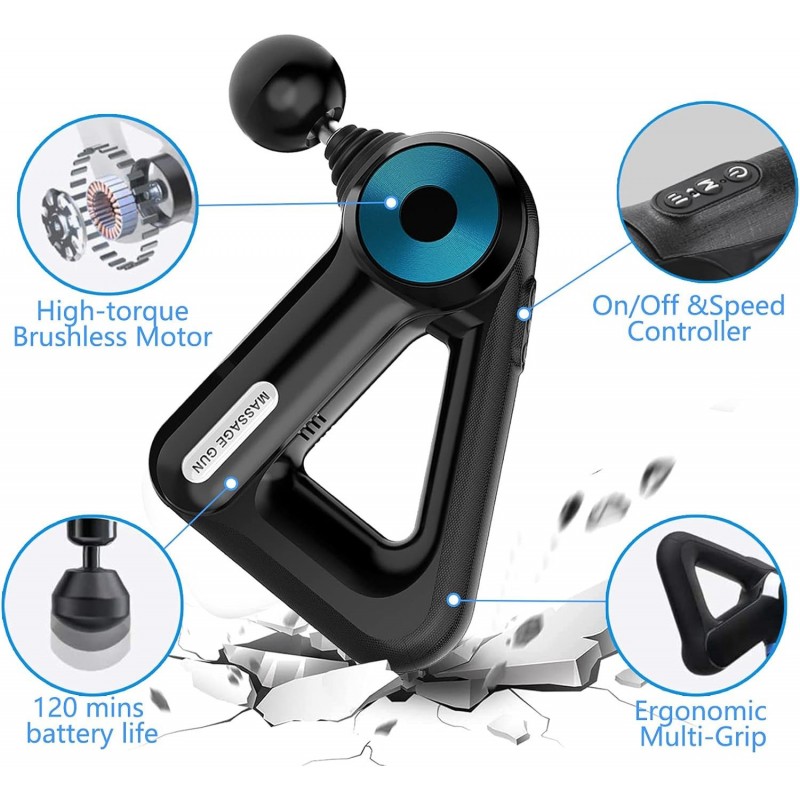 Discover the ultimate solution for muscle relaxation and relief with our versatile massage gun, designed specifically for effective recovery. The Masseur Polyvalent : Pistolet de Massage pour la Relaxation Musculaire et le Soulagement is your go-to device for soothing sore muscles and enhancing overall well-being. This massage gun features an ergonomic design that ensures a comfortable grip, allowing you to target those hard-to-reach areas effortlessly. Its sleek black exterior, accented with metallic blue details, not only looks modern but also fits perfectly in your hand. Equipped with multiple attachments, this device offers tailored massage experiences. Choose from a four-pronged attachment for larger muscle groups or a round massage ball for general use. The flat head is perfect for broad areas like the back, while the cone-shaped point targets deep tissue and trigger points effectively. Additionally, nodules designed for acupressure provide pinpoint stimulation to alleviate tension. The Masseur Polyvalent operates on varying speed settings to cater to your preferred intensity level—whether you're warming up before exercise or recovering post-workout. This makes it an essential tool not just for athletes but anyone seeking muscle relaxation. This innovative device is lightweight at just 3.75 pounds and compact enough to take anywhere you go—be it home or gym. With its user-friendly controls positioned conveniently on the handle, achieving optimal comfort has never been easier. If you're looking to enhance your recovery routine or simply want relief from everyday stressors, look no further than our versatile massage gun—a perfect blend of style and functionality that delivers results!