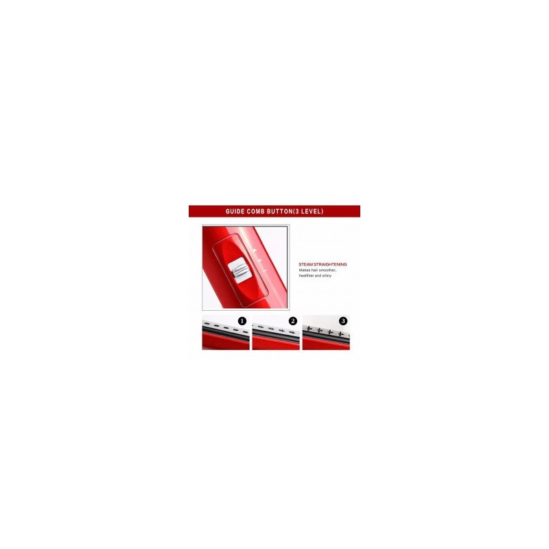 Transform your hair styling routine with the Shark Beauty FlexFusion Straight 5-in-1 Air and Ceramic Styling Tool. This innovative Outil de coiffure pour fer à lisser combines multiple functionalities into one sleek device, allowing you to dry, straighten, and curl your hair effortlessly. The vibrant red design is not only eye-catching but also features durable heat-resistant materials that ensure safety during use. With a streamlined shape and ergonomic handle, this tool provides a comfortable grip for easy maneuverability. Equipped with five adjustable heat settings and three speed options, the FlexFusion Straight Styler caters to all hair types. Whether you have fine strands or thick locks, you can customize your styling experience for optimal results. The digital display panel makes it simple to monitor temperature adjustments at a glance. A standout feature of this hair straightening tool is its integrated water chamber. This unique element allows for steam infusion while styling, which helps hydrate and condition your hair as you straighten it. Say goodbye to excessive heat damage; this tool promotes healthier-looking locks without compromising on style. The included syringe accessory makes refilling the water chamber hassle-free, enhancing the functionality of this versatile device. Plus, its long and flexible cord ensures ease of movement as you create stunning hairstyles from the comfort of your home. If you're looking for an all-in-one solution that delivers salon-quality results without leaving home, look no further than Shark Beauty's FlexFusion Straight 5-in-1 Air and Ceramic Styling Tool—your new go-to Outil de coiffure pour fer à lisser.