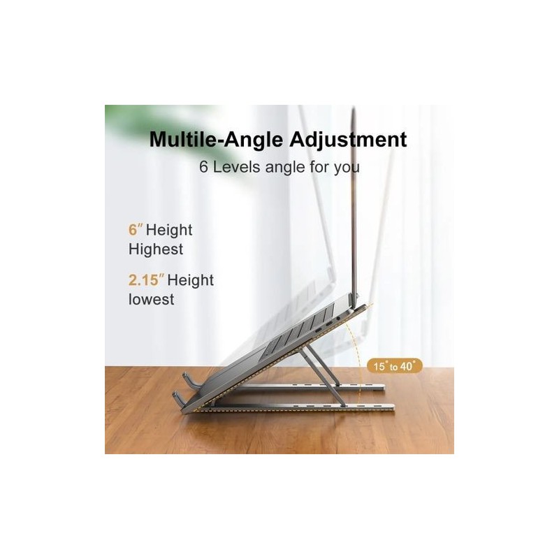 Discover the Aluminum Laptop, Tablet, and Phone Stand, foldable. This lightweight and durable stand offers optimal adjustability for ergonomic comfort. With its compact design and modern finish, it is perfect for the office or on the go. Enjoy better posture while working or watching your favorite content.