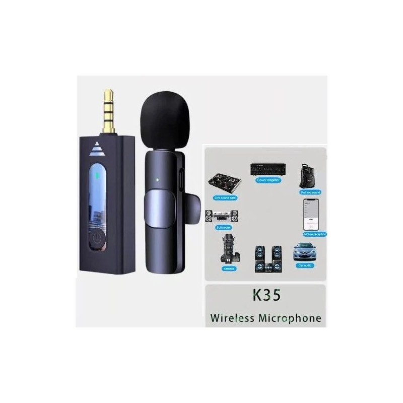 Discover the K35 3.5mm Wireless Lavalier Microphone Gaming Studio for iPhone Type-C PC Professional Live Streaming Microphone, a cutting-edge audio accessory designed for content creators, streamers, and professionals. With its compact and sleek design, this microphone delivers exceptional sound quality while allowing for great freedom of movement thanks to its wireless functionality. The two lavalier microphones feature a cylindrical shape that makes it easy to attach them to your clothing, ensuring optimal comfort during long recording or streaming sessions. Each microphone is equipped with a green LED indicator that informs you about the power status or connection, adding a practical touch to its use. The rectangular receiver easily connects via a 3.5mm audio jack, ensuring compatibility with various devices such as iPhones, Type-C devices, and personal computers. Its matte black finish enhances its professional appearance while being robust enough to withstand the rigors of recording environments. Made from durable and lightweight plastic materials, the K35 3.5mm Wireless Lavalier Microphone is ideal for those seeking portability without compromising sound quality. Whether you're live streaming or interviewing guests in a studio, this microphone will meet all your audio needs with excellence. In summary, if you're looking for a reliable and high-performance microphone for your audiovisual projects, look no further than the K35 3.5mm Wireless Lavalier Microphone Gaming Studio. It combines practicality and acoustic excellence in a sleek format suitable for modern professionals.