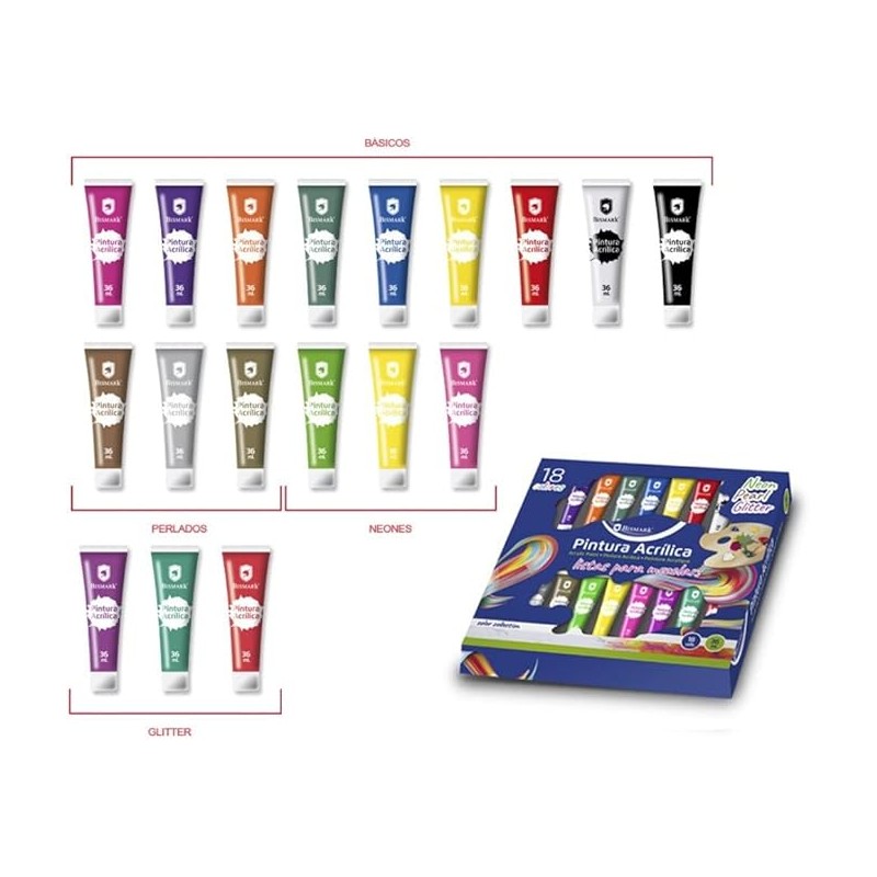 Bismark Set of 18 multicolored acrylic paints 36 ml