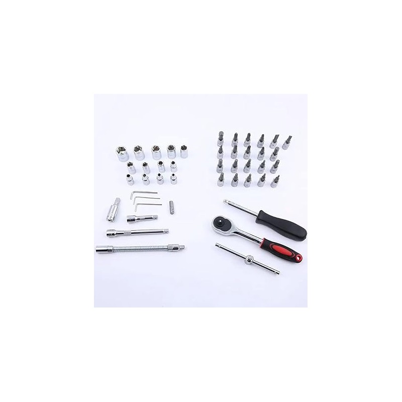 Discover the ultimate solution for your mechanical and automotive needs with the Socket Wrench Set/Socket Wrench, Wooauto 46 Pcs 1/4" Socket Set with Storage Box Wrench and Set. This comprehensive tool set is designed to enhance your efficiency, whether you're a professional mechanic or a DIY enthusiast. The set includes a variety of sockets crafted from high-quality chrome vanadium steel, ensuring exceptional durability and resistance to corrosion. With a polished chrome finish, these sockets not only look great but are also easy to clean. The diverse range of sizes accommodates various nut and bolt configurations, making it an essential addition to any toolbox. Equipped with extension bars and adapters, this socket set offers remarkable versatility. The extension bars allow you to reach tight spaces effortlessly while the adapters enable compatibility across different socket sizes. Additionally, the included L-shaped Allen keys, made from sturdy steel, provide further options for tackling hexagonal screws. The right side of the storage box features an array of screwdriver bits, including Phillips and flat types made from hardened steel for maximum longevity. The innovative design allows for quick changes between bits using the ergonomic pistol grip style ratchet handle. With its 72-tooth ratchet mechanism, you can enjoy smoother operation in confined areas. This well-organized tool set comes in a compact storage box that ensures easy access and portability. Ideal for automotive repairs or general assembly tasks, the Socket Wrench Set/Socket Wrench, Wooauto 46 Pcs 1/4" Socket Set with Storage Box Wrench and Set is your go-to choice for reliability and performance in every project.
